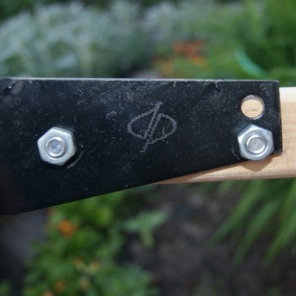 Ploskořez. Nástroj pro snadnou práci na záhoně ve stoje. Spíše švihem, než silou. Trochu motyka, trochu kosa, trochu hrábě, trochu hák na podávání si věcí. Univerzální, lehký nástroj.